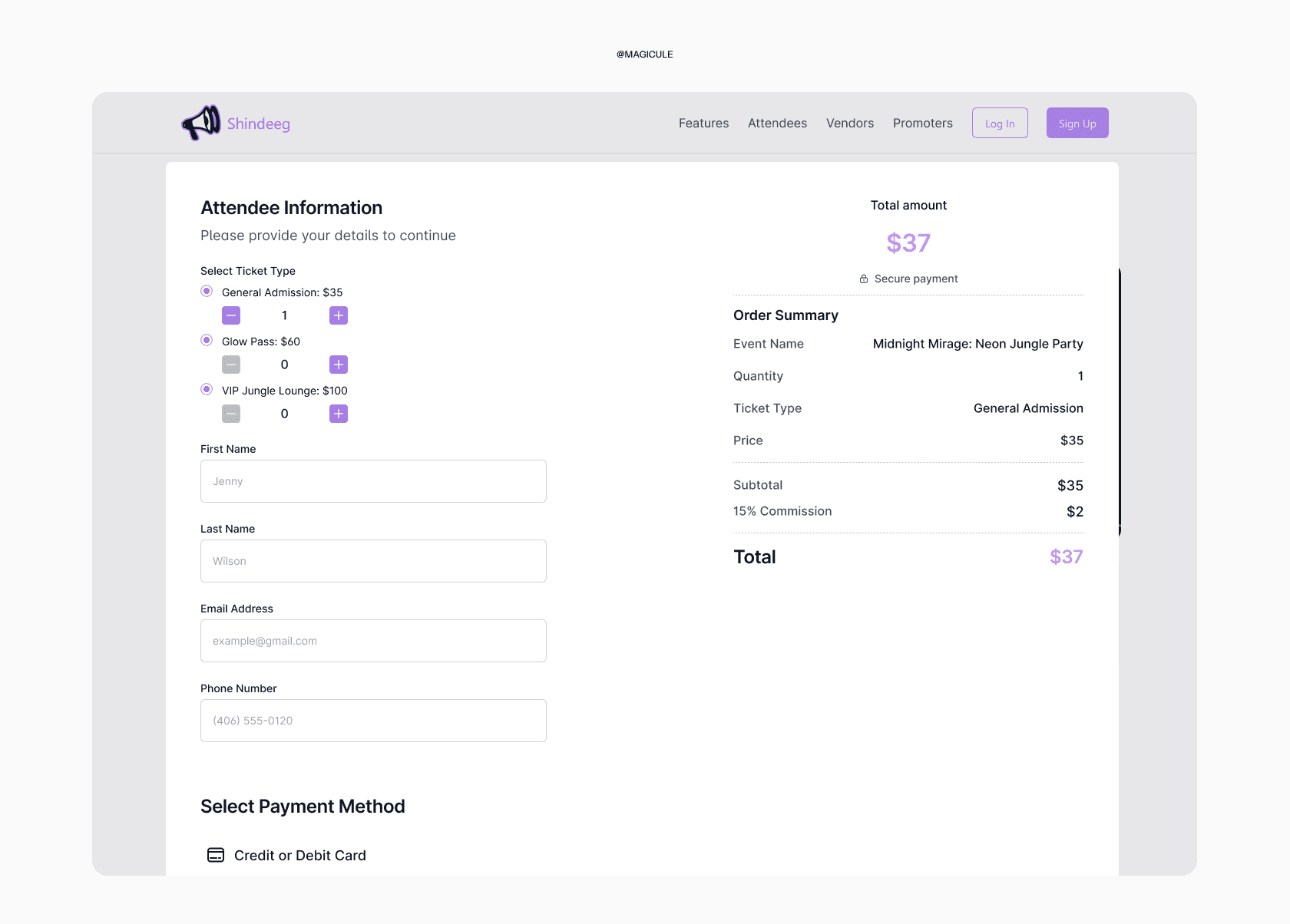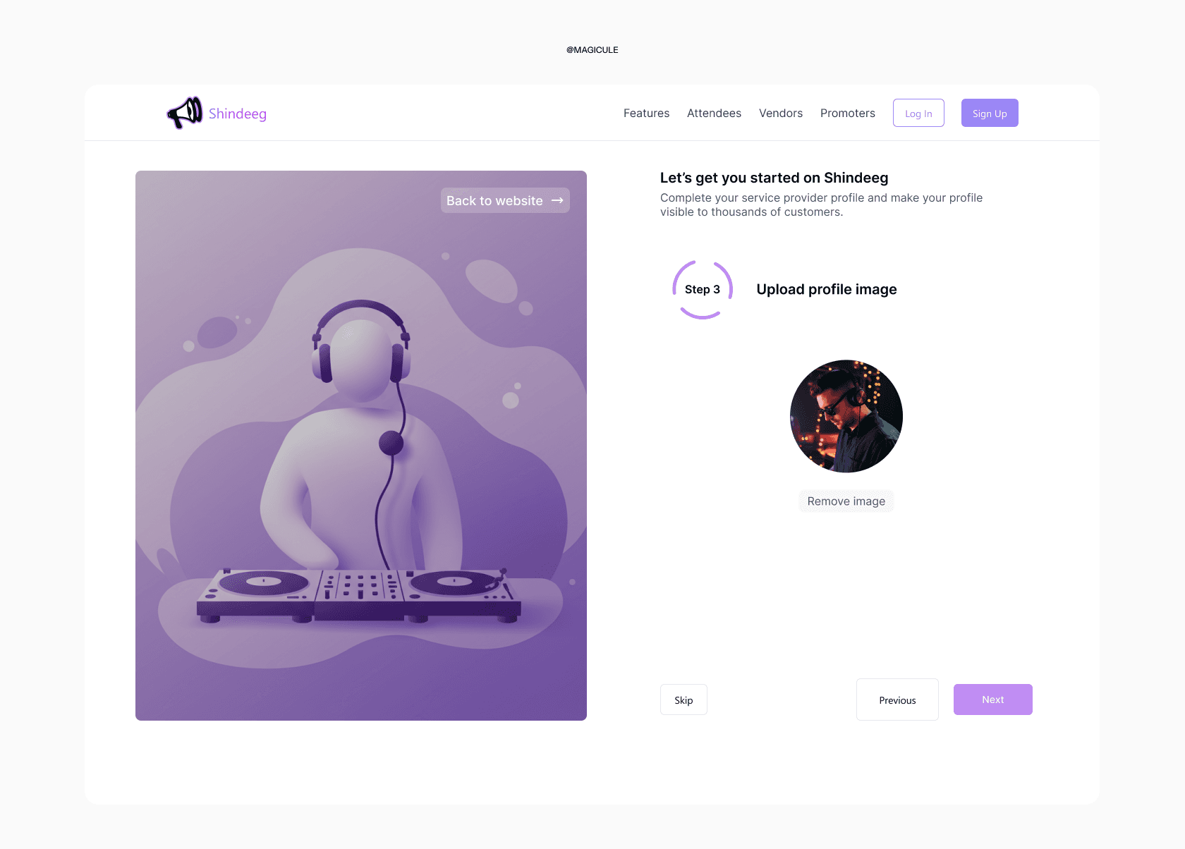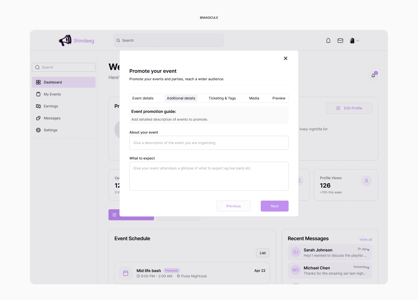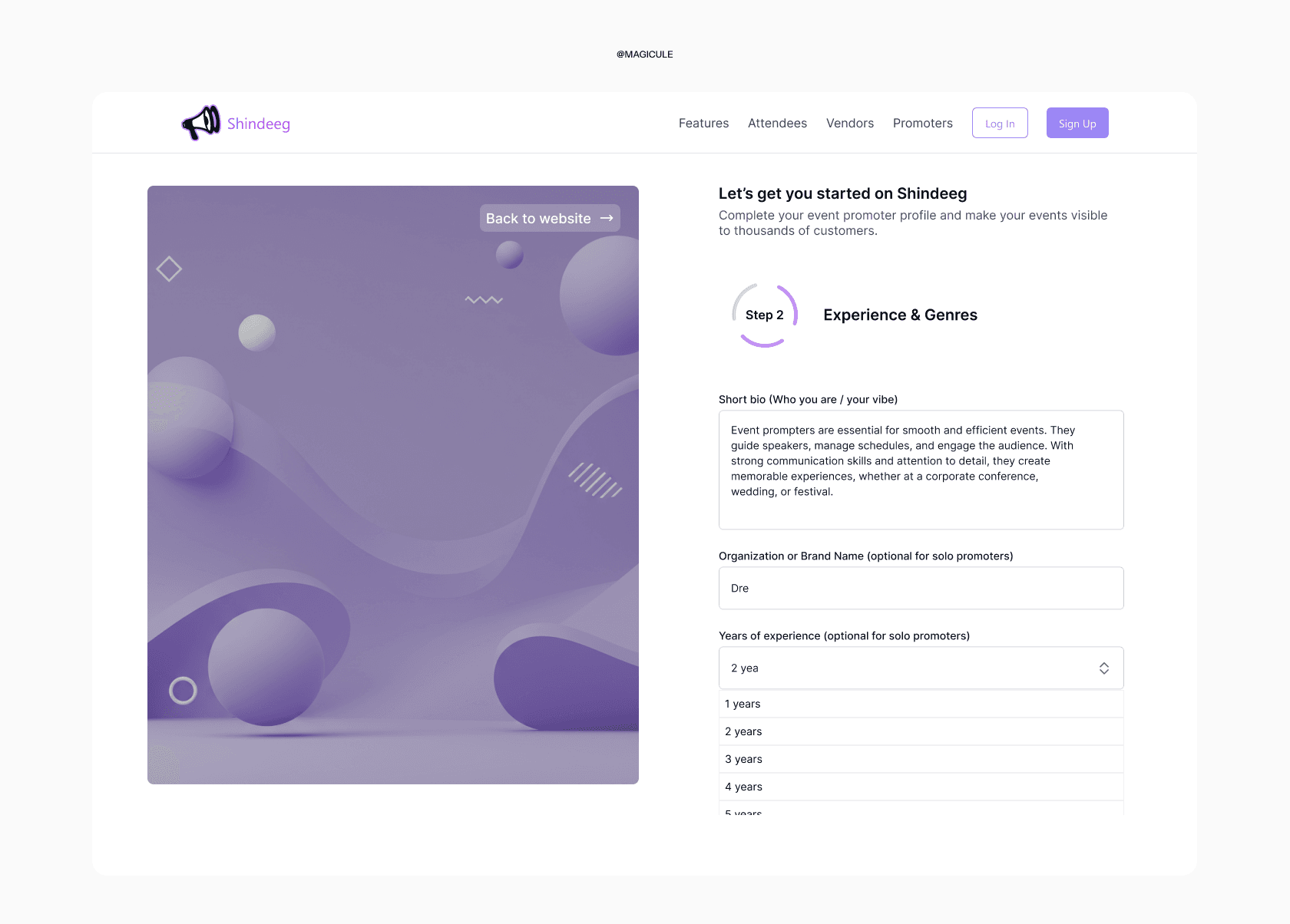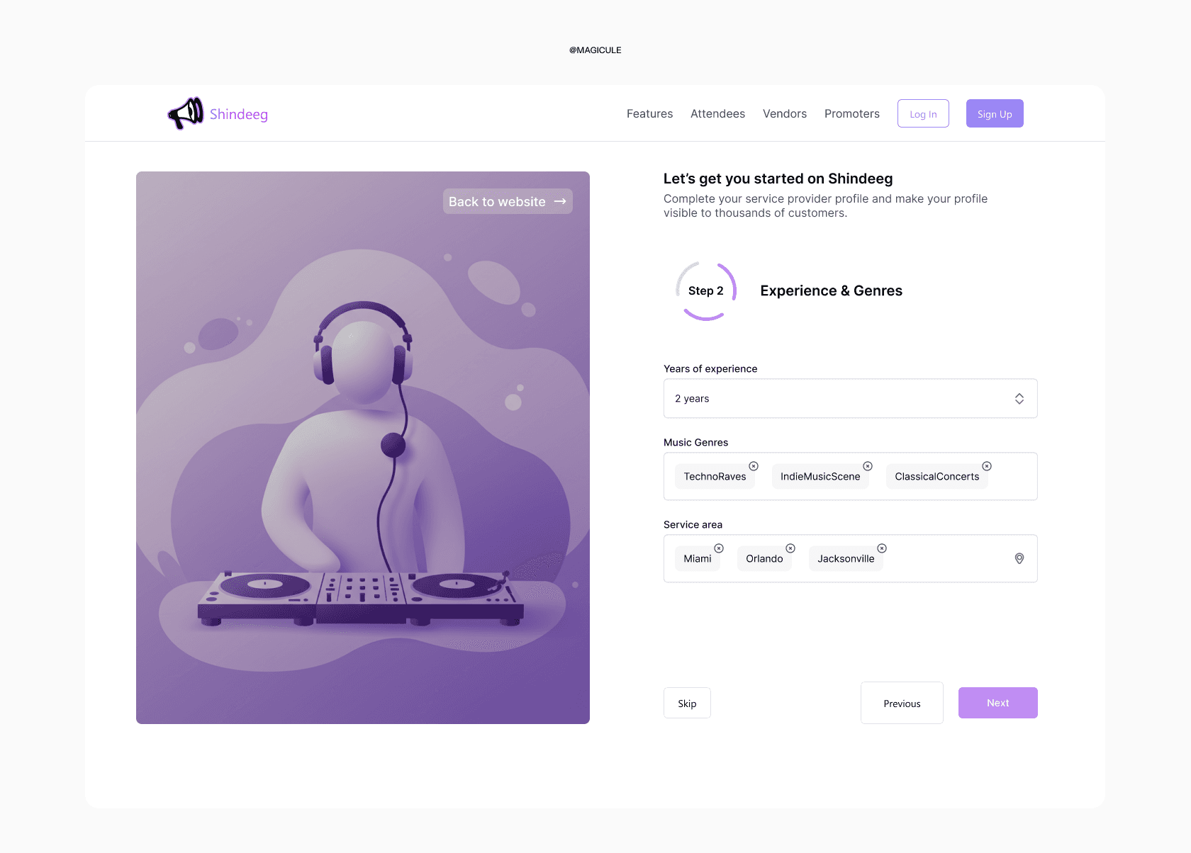 Shindeeg is a specialized marketplace designed to connect the key players in the live events and entertainment sector: DJs (Service Providers), Event Promoters (Venue/Event Organizers), and Party Goers and also people who wants to hire Djs (Customers). The platform's goal is to simplify the discovery, booking, and management of live music and events.